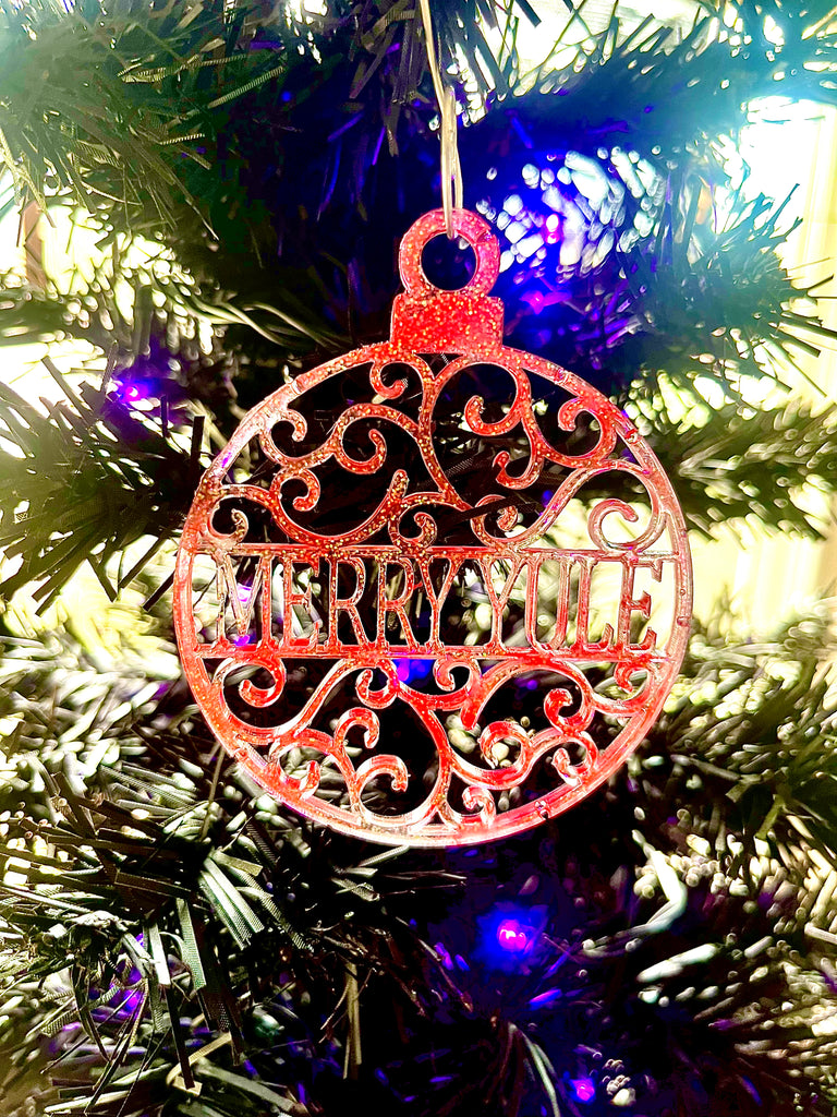 Bridge the gap between ancient & modern practice & embrace the secret pagan history of the holiday season with your very own Hand Made Merry Yule ornament. Witch crafted in secret at the crossroads ,on Samhain, during a lunar eclipse, these Yule ornaments were poured in a mystery blend of glittering ice eye candy pigments, blended with a single drop of blood red colorant. These yule ornaments make a perfect gift for the pagan or witch in your life this winter solstice.