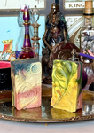 Introducing our Summerween Blend, Empress Soap conjuring. Poured in a potent blend of Coconut, Castor, Sweet Almond, Olive, Palm, Canola, & Vitamin E, Oils, extracted sustainably, & stringently refined for purity, before being pigmented with activated charcoal & flower based colorants only. Our Summerween Blend is fresh scented in an enchanting blend of jasmine, orchids, gardenias, ginger, black pepper, ylang ylang, & clove, ending in bottom notes of patchouli, vanilla, sandalwood, amber & musk, to awaken early fall months before its natural arrival across our earthly plane. Pouring these offerings also came with quite a soap science trick we rarely put on display, although poured in black, & white, & red all over, these soap offerings floral pigments have shifted to a bewitching blend of sunflower yellow, pumpkin orange, & vine green magickally.